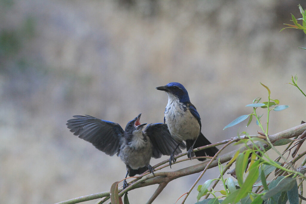The western scrub jay of the California mainland is the cousin of the island scrub jay. Due to a lack of competition, abundant food sources, and isolation the island scrub jay has evolved over thousands of years into its own species. It’s enabled it to grow to be a third size larger than its mainland counterpart, a natural phenomenon known as island gigantism. Island scrub jays are also a deeper and prettier blue than the western scrub jay, and they possess a larger, beefier beak.